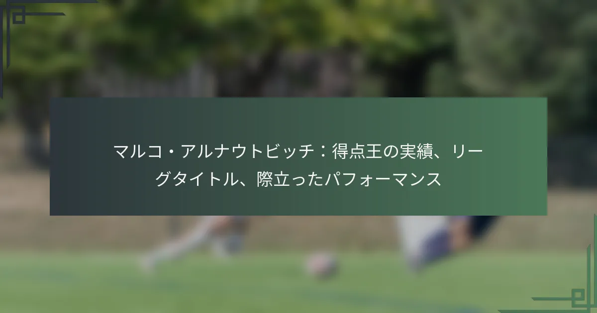マルコ・アルナウトビッチは、キャリアを通じて prolific scorer(得点源)としての地位を確立し、国内リーグや国際大会で重要なマイルストーンを達成しています。彼のゴールを決める能力は、さまざまなリーグでトップスコアラーの一人として認識されており、ゲームへの影響を示しています。
